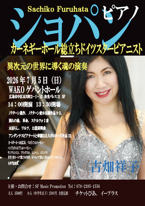 ショパンピアノカーネギーホール総立ちドイツスターピアニスト 古畑祥子ピアノリサイタル